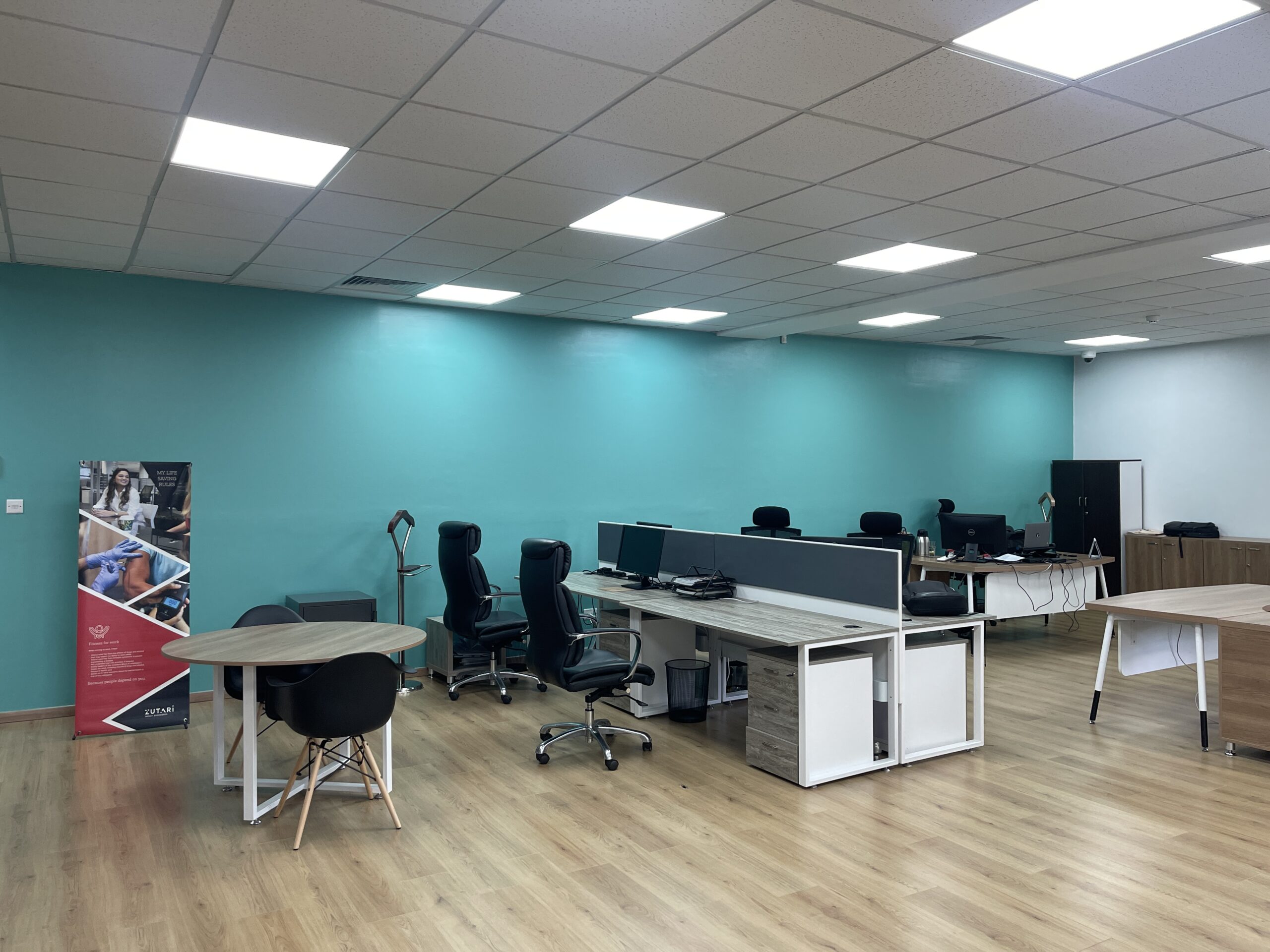 We began with an in-depth consultation to understand Zutari’s brand vision and space layout. From there, our team executed the full branding rollout, incorporating wall graphics, brand-aligned colors, and branded office accessories. Signage solutions included directional signs, nameplates, and illuminated exterior signage. The lighting design was carefully selected to balance functionality with aesthetic appeal, creating a warm and modern office atmosphere.